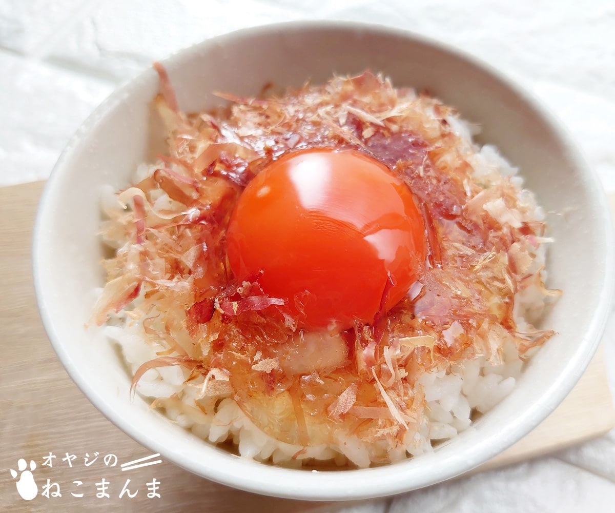 - 米 茶碗1杯 かつお節 適量 とろろ昆布 ひと掴み程 生卵 1個 醤油 適量